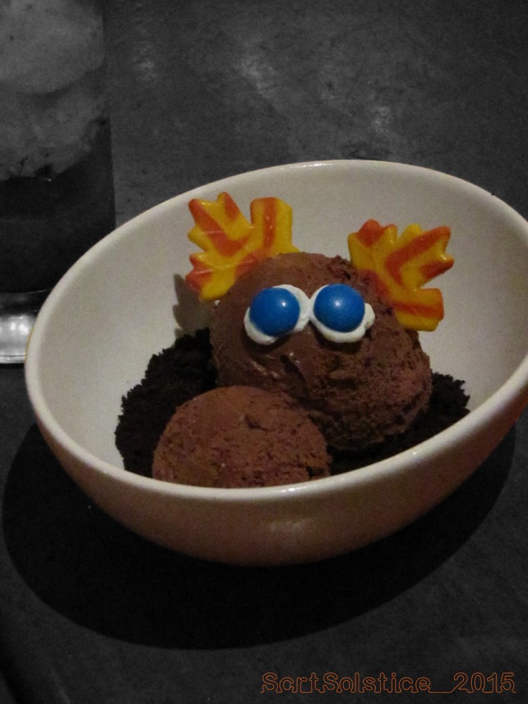 It’s chocolate mousse from Le Cellier! They didn’t have it on the menu at the time, but it was offered to us as a daily dessert offering and I was so excited when I saw it – adorable! Mousse shaped like Moose! And so very tasty!