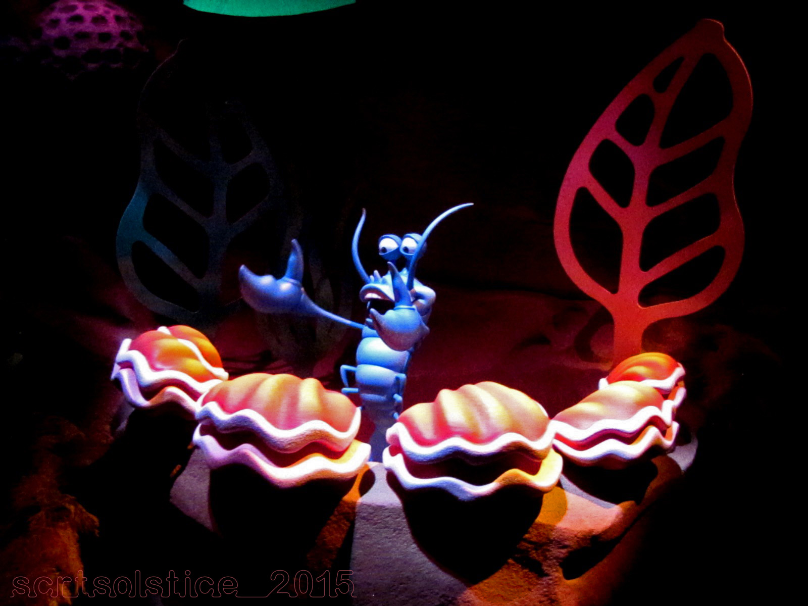 I had been hoping for a great shot of Ariel from Soundsational, but alas it was not meant to be. Will need to get a few more parade shots when I am in a Disney Park next. Ideally that will be around the corner (fingers crossed), but whatever will be will be. Out of the four or so shots I widdled this down to this happy little fella from the ride based on The Little Mermaid. I think this particular shot may be from the version in Walt Disney World, but it is the same ride either way. It may have been the toothy grin that did Mr. A in, but for me it was all about his little claws!